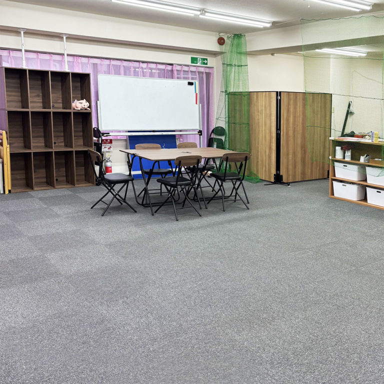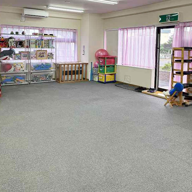 開放的な療育室でお子さまがのびのびと遊んだり学んだりできるよう、安全面にも配慮して環境を整えています。